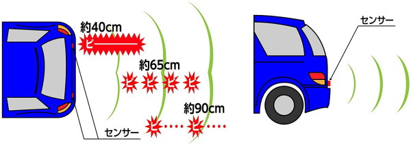 もしもセンサーが断線している場合には、LEDが不規則な早い点滅で知らせてくれます。障害物までの距離が約60cm以内になるとインジケーターLEDが点滅し、その距離が短くなるに従って点滅スピードが早くなっていきます。